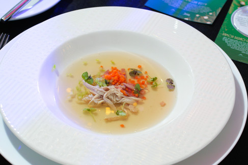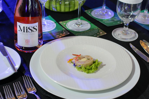 The menu consisted of amuse bouche - Chicken Relleno paired with Little Miss Rose 2020; soup - Sopa Aristocrata, salad – Pansit Buko Salad, main courses – Lapu-Lapu De La Reina paired with Beringer NV Chardonnay 2016 and Filet de boeuf Prince Albert paired with Ramón Bilbao Gran Reserva 2011, and dessert – Cathedral Windows paired with Brachetto D’ Acqui 2019.