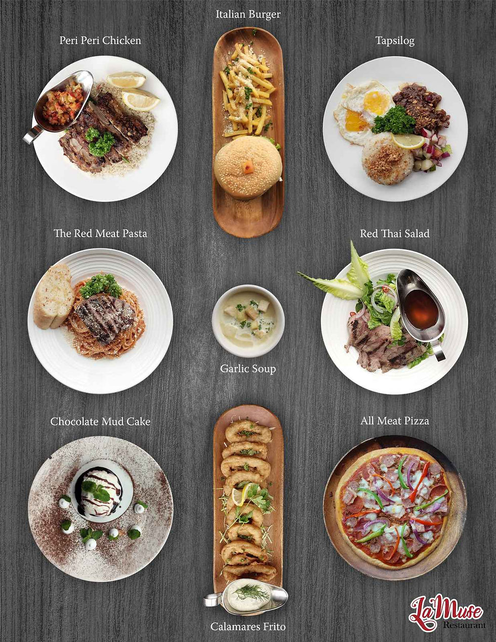 At La Muse, embark on a culinary journey through the heart of Filipino flavors. Power up your day with generous servings of breakfast classics like Tapsilog, Bangsilog, and Hotsilog, or indulge in the robust flavors of Pansit Guisado, Lumpiang Shanghai, and Chopsuey Guisado for a festive feast. On those chilly, rainy days, the restaurant offers an enticing selection of soups, including Beef Bulalo, Garlic Soup, Onion Soup, Minestrone Soup, and Potato Leek Soup to warm your soul.
