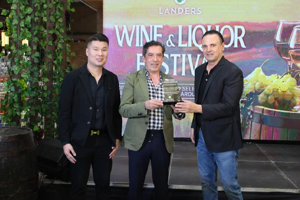 Giving appreciation to a special wine masterclass at the Landers Wine & Liquor Festival 2025 in Landers Vermosa.(L–R) Landers VP for Marketing and Membership Kenneth Ocampo, Spanish winemaker Gorka Zabalbeitia of Tomevinos Family Estates, and Landers Superstore CEO Bill Cummings.